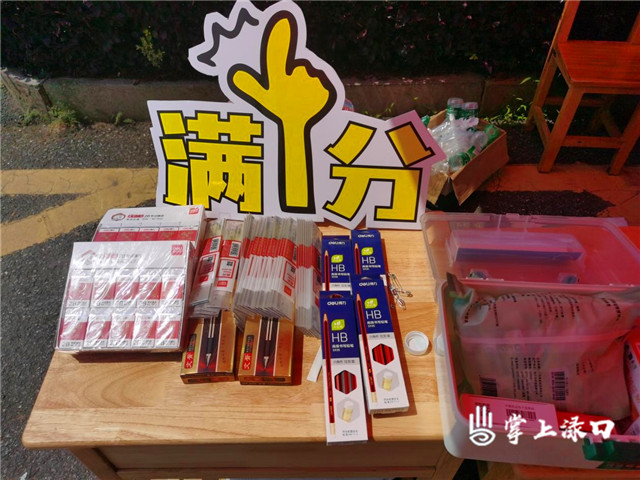 大家顶着炎炎烈日,为考生和家长们送上免费饮用水、口罩及多种防暑物资,并为考点学生送上助考文具:1支铅笔、1支签字笔、1块橡皮和1把尺,提醒考生防暑降温,沉着冷静,以平和心态积极应对。